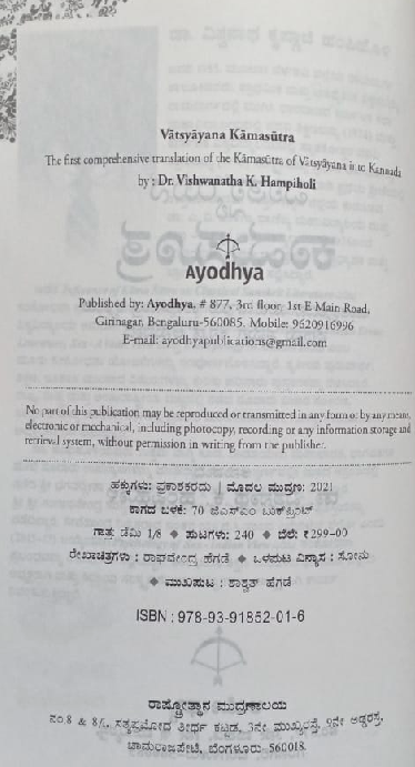 Vatsayana’s Kamasutra in Kannada by Dr. Vishwanath K Hampiholi
